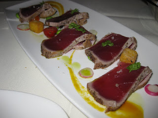 Fresh and ruby red ahi tuna. Deliciously smoked and peppered. It was mouth watering, but I'm not sure if five pieces is worth $17